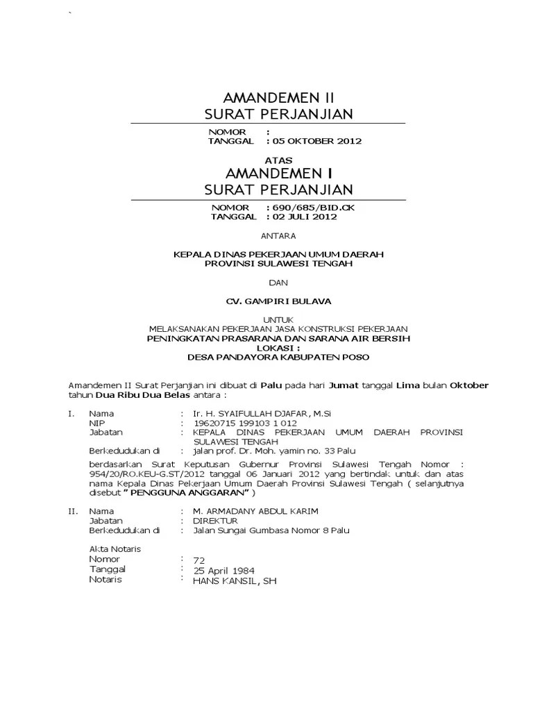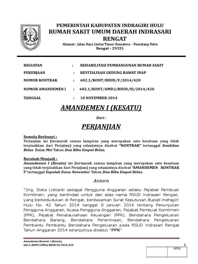 Draf adendum perjanjian ini berisi ketentuan yang mengatur perubahan isi dan ketentuan sebuah perjanjian kontrak diantara para pihak yang menandatanganinya ketentuan di di dalamnya mengatur tentang. Contoh addendum surat perintah kerja kontraktor contoh addendum surat perintah kerja lembur contoh addendum surat perintah kerja tertulis.