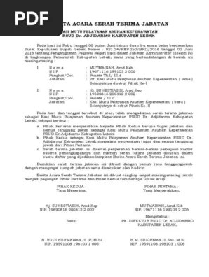 Berita acara serah terima jabatan. Surat berita acara serah terima bisa dipergunakan untuk banyak hal. Contoh surat serah terima jabatan terbaru serah terima jabatan dalam sebuah perusahaan atau organisasi adalah hal yang sudah umum dilakukan.
