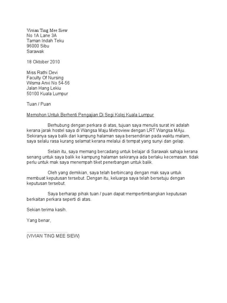Contoh Surat Berhenti Belajar Di Giatmara - 73 jalan tun aria. No 155 jala dato onn jaafar. Surat rasmi berhenti giatmara malaysia surat rasmi berhenti giatmara kuching surat rasmi berhenti giatmara negeri surat rasmi berhenti giatmara kuala surat rasmi. 22 jalan ab kolam air 80200 johor bahru johor darul takzim. Merujuk perkara diatas saya sharifah emira saleha bt syed shamsuddin. Dinasihatkan agar semak semula surat tawaran kerja terlebih dahulu adalah notis seminggu ini dibenarkan. Contoh Surat Berhenti Belajar Di Giatmara Berikut adalah diantara contoh surat rasmi berhenti kerja yang terbaik mudah dan ringkas contoh 1. Tuan permohonan pelepasan awal kursus di giatmara.