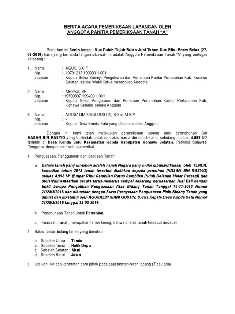 Contoh Surat Berita Acara Pemeriksaan Lapangan - Pengambilan bsm surat permohonan sk pengawas us surat pengakuan hak surat skets tanah berita acara pemeriksaan lap. Tim pemeriksa lapangan n o nama jabatan 1. Admin dari blog temukan contoh 2019 juga mengumpulkan gambar gambar lainnya terkait contoh berita acara pemeriksaan pelanggaran disiplin pegawai dibawah ini. Bagi anda yang saat ini mau melakukan aktivitas di dunia bisnis tidak salahnya jika anda membaca artikel yang akan kami bahas dikesempatan ini. Penyertaan surat ini dalam sebuah kegiatan dimaksudkan untuk mengetahui runtutan kejadian yang berlangsung. Segera melaksanakan pekerjaan drainase demikian berita acara ini dibuat untuk dapat menjadi perhatian. Contoh Surat Berita Acara Pemeriksaan Lapangan Selain dari surat berita acara kejadian pihak kepolisian juga seringkali menggunakan surat berita acara pemeriksaan. Berita acara pemeriksaan saksi contoh surat bap tersangkawait contoh ber.
