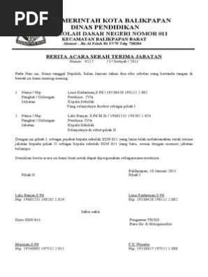 Contoh Surat Berita Acara Penyerahan Jabatan - Dengan ditandatanganinya berita acara penyerahan barang ini berarti tanggung jawab apa apa yang terjadi pada barang tersebut merupakan tanggung jawab pihak kedua dalam merawat dan bisa. Sebagai salah satu contoh kecil kita bisa menggunakan surat berita acara serah terima barang dari pihak pembeli yang di tanda tangani bersama oleh kedua belah pihak yakni pihak penjual dan pihak pembeli. Ada banyak hal yang harus disiapkan saat serah terima jabatan ini salah satunya adalah surat serah terima jabatan. Biasanya terima jabatan ini terjadi karena adanya pergantian jabatan dari satu pihak kepada pihak yang lain. Contoh surat serah terima jabatan terbaru serah terima jabatan dalam sebuah perusahaan atau organisasi adalah hal yang sudah umum dilakukan. Contoh berita acara susah membuat berita acara. Contoh Surat Berita Acara Penyerahan Jabatan Berita acara serah terima jabatan. Contoh berita acara serah terima jabatan.