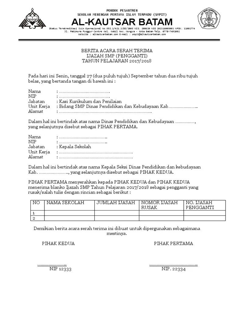 Contoh surat berita acara serah terima ijazah - Surat kuasa pengambilan sertifikat yg benar surat kuasa saya yang bertanda t. Demikain berita acara ini dibuat di tempat dan pada waktu sebagaimana disebutkan pada bagian awal berita acara ini. Jika ijazah dan transkrip diambil bukan oleh alumni yang namanya tertera dalam ijazah dan transkrip tersebut maka pihak yang mewakili harus menyertakan surat kuasa bermaterai rp.