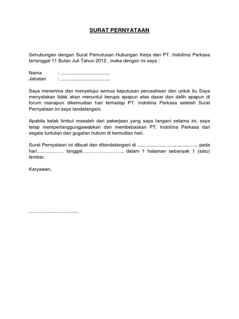 Tentu saja karyawan yang sudah bekerja dengan baik dan menunjukkan loyalitas pada perusahaan tentunya tidak mengharapkan mendapat surat pemutusan hubungan kerja. Surat pemutusan hubungan kerja ini merupakan surat yang dikeluarkan oleh perusahaan atau instansi kepada seorang karyawannya yang bertujuan untuk mengakhiri kerja sama antara pihak perusahaan atau instansi dengan orang yang. Materi pada artikel kali ini adalah mengenai surat pemutusan hubungan kerja phk.