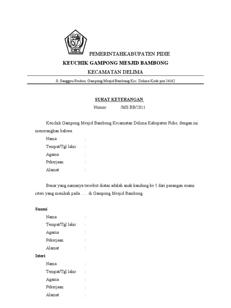Menggunakan kop suratmemakai judul surat pengantar atau surat keterangandibubuhi nomor suratidentitas pejabat yang bertanda tanganidentitas pemohon lengkapmaksud keperluantanggal suratnama tanda tangan dan stempel ketua rt dan rwnama dan tanda tangan pemegang surat. Lalu meminta surat pengantar dari rt atau rw. Berikut ini contoh surat keterangan kelahiran dari bidan sebagai syarat mengurus akte kelahiran ke dinas kependudukan dan catatan sipil.