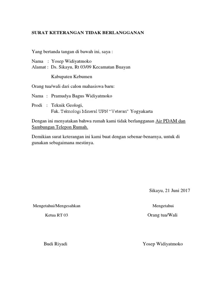 M enyatakan bahwa rumah kami tidak berlangganan telepon dan pdam demikian surat keterangan ini kami buat dengan sebenar benarnya dan penuh rasa tanggung jawab. Namun anda mungkin bisa mempergunakannya sebagai bahan pelajaran ataupun sejenisnya. Hanya ada satu yang saya inget yakni jadwal bulan pembayaran yang nyewa rumah hehehehe.