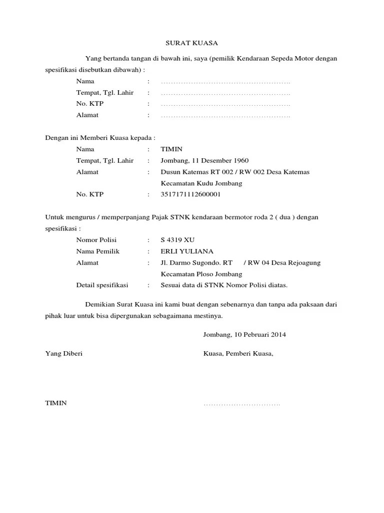 Kaligawe 253a polowijen rt 05 rw 02 blimbing kudus pekerjaan. Surat kuasa perpanjangan stnk standard. Untuk lebih jelasnya saya akan tunjukan contoh format surat.