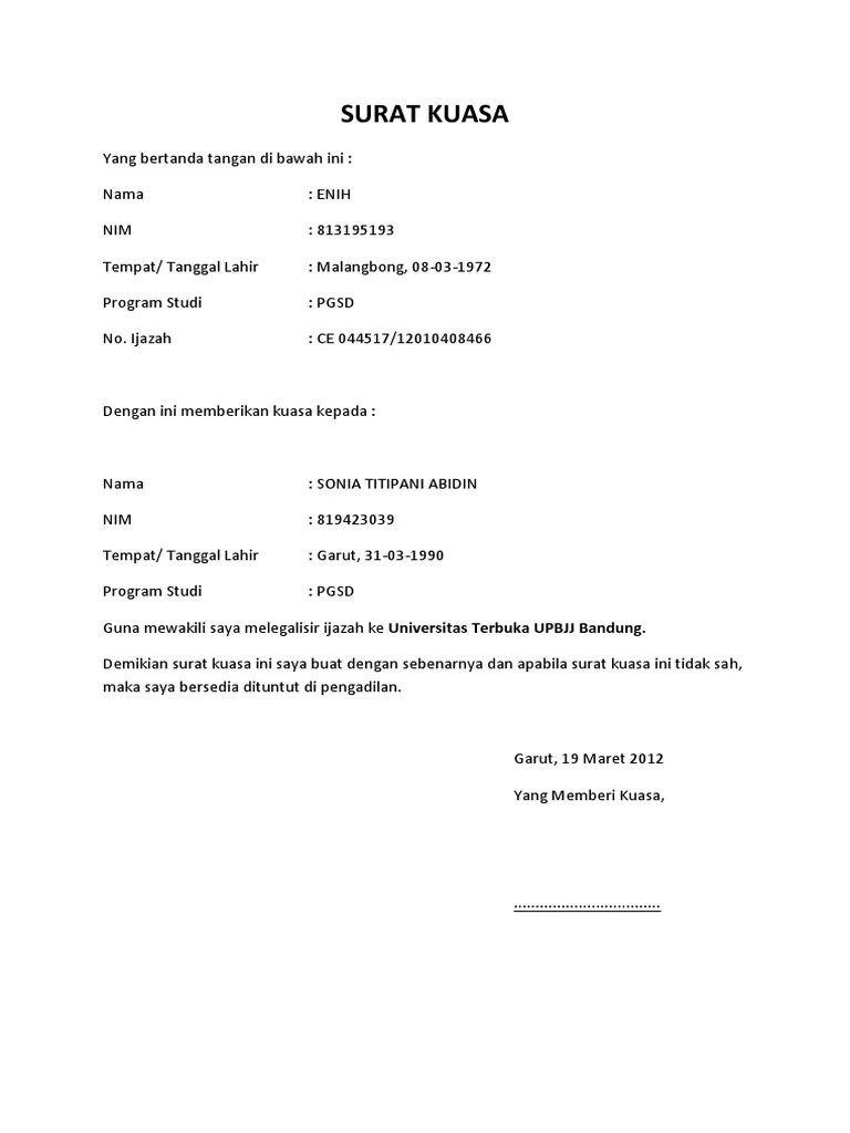 Contoh Surat Kuasa Pengurusan Legalisasi - Berdasarkan putusan mahkama agung tanggal 28 maret 2002 nomor 1366 pdt 2000 untuk kuasa kuasa tertentu seperti kuasa dengan pembubuhan cap jempol atau kuasa dengan huruf kanji harus dilegalisasi oleh pejabat yang berwenang yakni camat bupati walikota dan notaris putusan ma 20 agustus 1984 no 272k pdt 1983 serta harus disahkan oleh ketua pengadilan negeri atau. Mohon maaf apabila terdapat kesamaan nama tempat atau informasi di dalam surat karena surat yang dibuat hanya untuk percontohan saja tanpa ada maksud apapun. Demikian contoh surat kuasa perpanjangan stnk yang baik dan benar sebagai referensi anda dalam membuat surat resmi yang profesional. Academia edu is a platform for academics to share research papers. Dalam psl 15 ayat 2 huruf a uu jabatan notaris notaris dalam jabatannya bewenang mngesahkan tanda tangan menetapkan kpastian tggal surat di bawah tangan dgn mendaftar dalam buku khusus. Dan kepastian tanggal pembuatan surat tersebut. Contoh Surat Kuasa Pengurusan Legalisasi 15 contoh surat kuasa tanah untuk berbagai keperluan setiap harta benda tentu memiliki harga tersendiri yang harus kita jaga. Ketika ingin menjual tanah dan mewakilkan orang lain maka disitulah peranan penting surat kuasa dari pemilik yang sah.