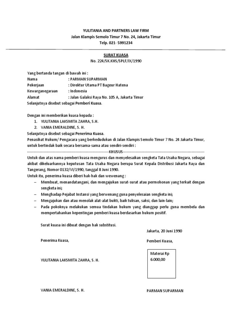 Contoh Surat Kuasa Substitusi Tata Usaha Negara - Dalam sengketa tata usaha negara atas dikeluarkannya surat dari keputusan no 25 wk vi 2015 tertanggal 10 maret 20118 tentang pembongkaran bangunan rumah dengan register perkara nomor 89 g 2015 ptun sby tertanggal 23 september di pengadilan tata. Surat keputusan tata usaha negara yang menjadi objek gugatan adalah. Surat izin usaha perdagangan siup izin mendirikan bangunan imb nomor identitas kepabeanan nik izin gangguan hiden ordonnantie angka pengenal importir api izin usaha industri iui izin usaha perkebunan iup izin operasi io sertifikat laik operasi slo perorangan. 821 2 kep 007 dinpen 2013 tanggal 22 april 2013 yang diterbitkan oleh dinas pendidikan kota medan.