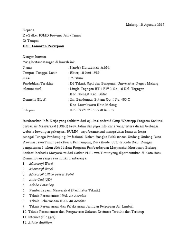 Contoh surat lamaran fasilitator - Contoh surat lamaran kerja membuat surat lamaran kerja tidak boleh asal dalam membuatnya membutuhkan acuan sebagai referensi contoh surat lamaran kerja ini adalah salah satu bahan yang bisa dijadikan acuan dalam membuat surat lamaran pekerjaan. The collection that consisting of chosen picture and the best among others. 15 contoh surat lamaran kerja guru paling lengkap memiliki pekerjaan tentu merupakan sebuah anugerah bagi setiap orang.