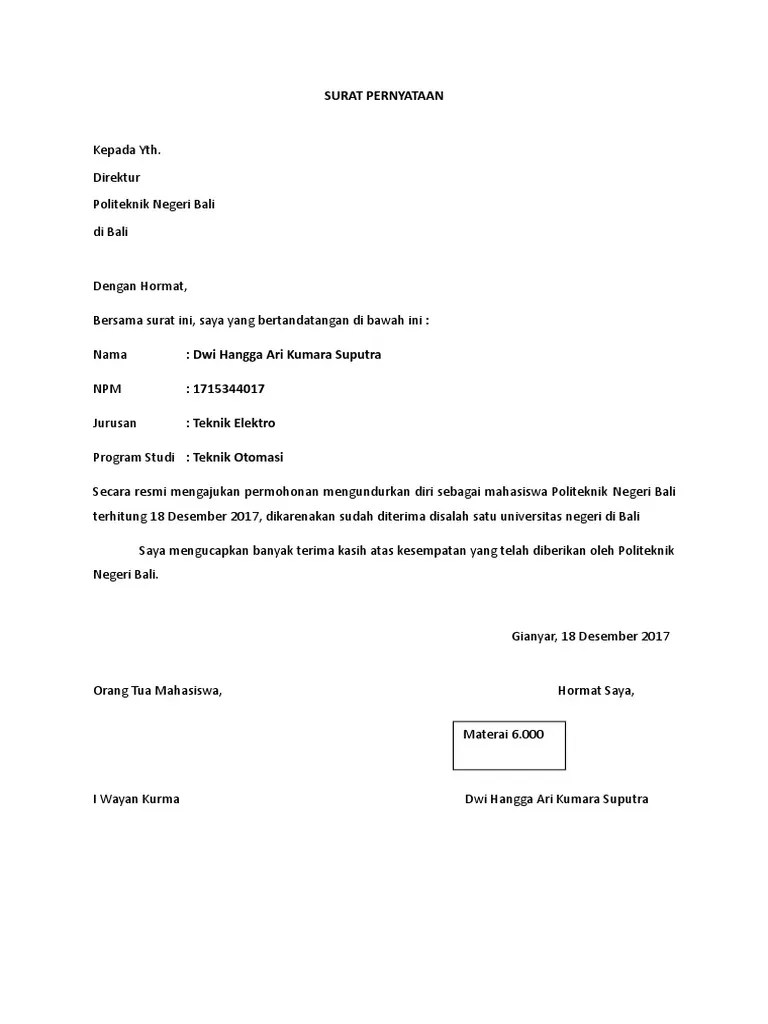 Contoh Surat Pengunduran Diri Pendaftaran Kuliah - Kepala yayasan bina ilmu. Bagi yang membutuhkan contoh surat pengunduran diri dari kuliah kami telah menyediakannya dalam bentuk file dokumen word dan pdf yang dapat anda rubah ataupun mengeditnya. Yogyakarta 10 juni 2019. Setelah sebelumnya saya membahas tentang contoh surat lamaran kerja kali ini saya akan membahas contoh surat pengunduran diri yang baik dan benar. Mengundurkan diri adalah sesuatu yang wajar dilakukan oleh siapaun yang berada dalam sebuah tanggung jawab perusahaan organisasi atau instansi lainnya. Contoh surat pengunduran diri mahasiswa dan dosen contoh surat pengunduran diri beasiswa kuliah. Contoh Surat Pengunduran Diri Pendaftaran Kuliah 9 cara menjaga kesehatan mental. Contoh surat pengunduran diri dari kuliah walaupun hampir sama dengan surat pengunduran diri dari sekolah tetapi jauh lebih rumit formatnya.
