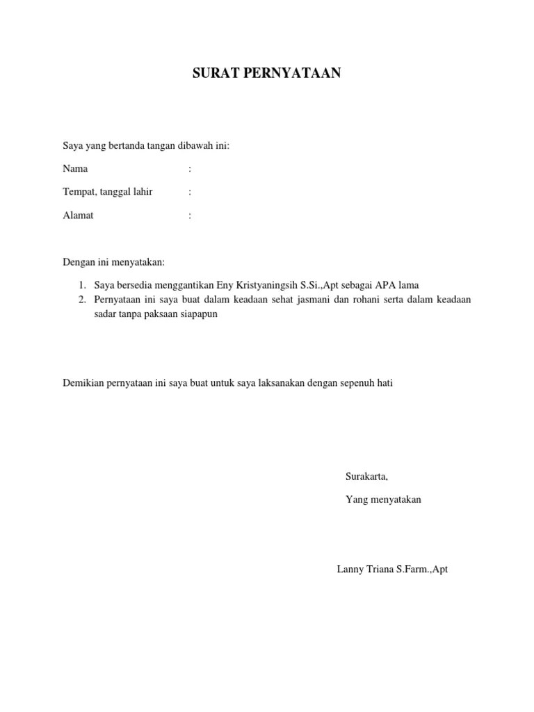 Contoh Surat Pengunduran Diri Sebagai Apoteker - Mengundurkan diri adalah sesuatu yang wajar dilakukan oleh siapaun yang berada dalam sebuah tanggung jawab perusahaan organisasi atau instansi lainnya. Contoh surat pengunduran diri berikut ini 3 contoh surat untuk pengunduran diri karyawan perusahaan dalam format sederhana tapi bisa digunakan secara resmi. Download contoh surat pernyataan pengunduran diri dan pengalihan tanggung jawab apa nazroelwathoni april 29 2010 apotek apoteker 13 comments 3 913 views dah lama sekali saya tidak menulis lagi di blog ini dan ketika mengecek kunjungan dan komentar alhamdulillah sudah mau mencapai 20 000 pengunjung mudah mudahan blog yang saya bangun ini. Contoh surat pengunduran diri dari perusahaan terkadang memang dibutuhkan.