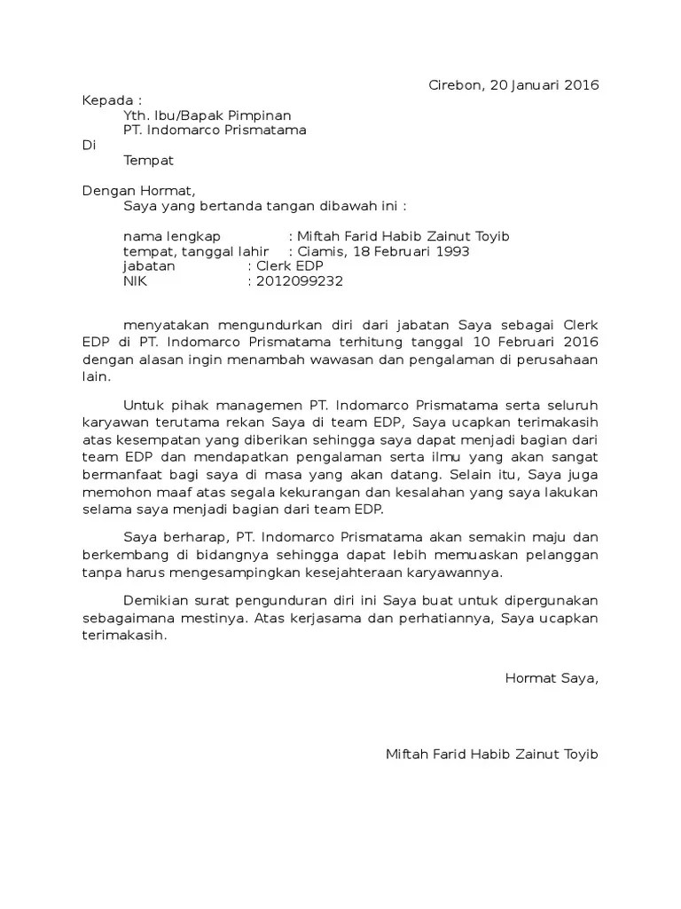 Contoh Surat Pengunduran Diri Untuk Indomaret - Selain itu gambar ini juga memiliki berbagai ukuran. Presentase terbesar pengunduran diri biasanya dilakukan oleh karyawan swasta yang masih ingin mendapatkan penghasilan lebih baik. Saya muhammad basri selaku warehouse helper di pt. Contoh surat pengunduran diri indomaret.