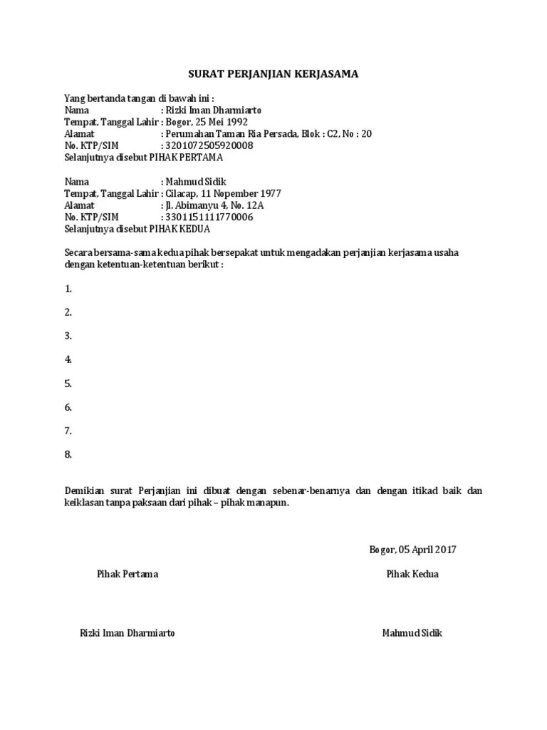 Contoh surat perjanjian kerjasama bagi hasil pada beberapa artikel sebelumnya telah kita bahas mengenai macam macam surat perjanjian. 02 january 2019. Contoh surat pernyataan perjanjian.