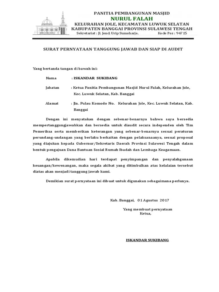 Contoh Surat Pernyataan Bersedia Diaudit - Diisi jabatan yang membuat surat pernyataan. Berdasarkan jenisnya berikut adalah contoh surat pernyataan. Pernyataan bersedia diaudit secara independen yang bertanda tangan di bawah ini. 15 contoh surat pernyataan kerja yang benar dan paling lengkap sebagai seorang karyawan maupun pegawai ada banyak jenis jenis surat yang mungkin saja anda akan pergunakan. Contoh surat pernyataan sebuah surat pernyataan sering kali dipergunakan untuk berbagai keperluan baik di dunia kerja maupun untuk keperluan perjanjian lainnya. Sebagai bahan referensi dan sebagai gambaran untuk anda yang sedang mencari bentuk sebuah surat pernyataan yang baik dan benar maka saya akan memberikan sampel agar dapat dipergunakan sebagai bahan rujukan. Contoh Surat Pernyataan Bersedia Diaudit Jenis surat pernyataan yang sangat beragam mungkin membuat anda merasa kebingungan ketika harus membuat salah satu jenis surat. Contoh surat pernyataan orang tua setiap anak tentu akan menjadi tanggung jawab orang tua.