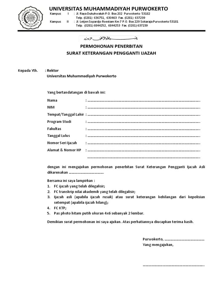 Mengisi surat permohonan pembuatan penggantian ijazah dan transkrip akademik yang hilang atau yang rusak dapat didownload 2. Surat pernyataan kehilangan ini saya buat pada hari senin tanggal 19 april 2017 bertempat di rumah saya. Foto 3 4 hitam putih 2 lembar.