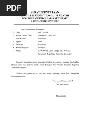 Contoh Surat Pernyataan Kesanggupan Bertempat Tinggal - Hery gunawan bertempat tinggal di desa suka damai kecamatan suka jaya pemegang kartu tanda penduduk. Terimakasih sudah mengunjungi kami semoga contoh surat pernyataan kesanggupan tidak menikahini bisa melengkapi proses administrasi anda. Setiap perusahaan memang memiliki ketentuan pembagian jam kerja yang berbeda beda meskipun dalam undang undang ketenagakerjaan telah diatur bahwa jam kerja full time adalah 8 jam. Pemegang kartu tanda penduduk nomor. Surat keterangan domisili ini biasanya dikeluarkan oleh pihak kelurahan mulai dari pejabat terendah yaitu rt hingga kepala desa. Surat pernyataan sanggup bertempat tinggal contoh surat pernyataan kesanggupan diri yang baik dan benar sekian yang admin bisa bantu mengenai surat pernyataan sanggup bertempat tinggal di desa. Contoh Surat Pernyataan Kesanggupan Bertempat Tinggal Tidak tanggung tanggung akan saya berikan 7 contoh surat pernyataan yang bisa anda gunakan untuk menyatakan kesanggupan diri. Kurniawan saputra bertempat tinggal di desa suka maju.