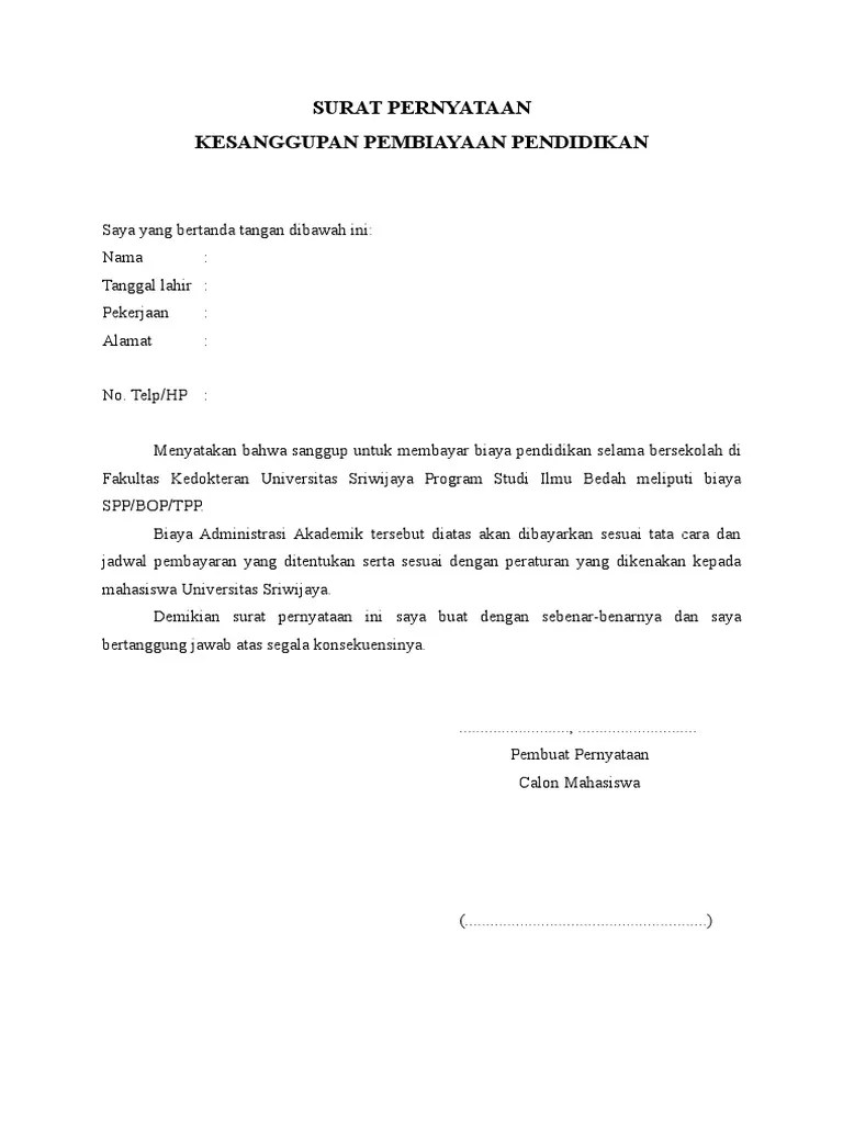 Contoh Surat Pernyataan Kesanggupan Membayar Biaya Sekolah - Contoh surat jaminan pembayaran biaya sekolah yang baik dan benar sebagai referensi pembuatan surat yang dapat diunduh gratis dan lengkap beserta penjelasan contoh surat untuk ibu yang menyentuh hati contoh surat valentine buat pacar. Namun masalah ekonomi yang tidak dapat diprediksi terkadang berimbas pada kegiatan sekolah atau perkuliahan. Contoh surat pernyataan kesanggupan mengenai kesanggupan atau tidak pada beberapa kasus mungkin bisa disampaikan secara lisan. 5 contoh surat permohonan keringanan biaya sekolah kuliah yang benar bisa menempuh sekolah dan perkuliahan dengan lancar tanpa terkendala biaya adalah impian setiap orang. Seperti contoh surat pernyataan kesanggupan untuk dapat mentaati peraturan sekolah ataupun tempat kerja surat pernyataan kesanggupan akan membayar ukt dan lainnya. Beberapa sekolah biasanya sudah menyediakan surat pernyataan kesanggupan membayar spp sekolah dalam bentuk print out sehingga orang tua wali hanya perlu mengisi data diri dan menandatangani surat. Contoh Surat Pernyataan Kesanggupan Membayar Biaya Sekolah Namun untuk kasus tertentu adakalanya harus menggunakan pernyataan tertulis. Jadi intinya surat ini berisi tentang kesanggupan seseorang untuk dapat melakukan sesuatu.