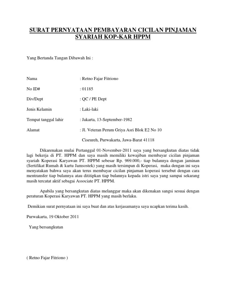 Contoh Surat Pernyataan Kesanggupan Membayar Kredit - Selain melihat pribadi yang meminjam kamu juga wajib untuk membuat surat pernyataan pembayaran cicilan hutang. Jadi intinya surat ini berisi tentang kesanggupan seseorang untuk dapat melakukan sesuatu. Contoh surat pernyataan kesanggupan membayar hutang tidak pernah bosannya kami menghadirkan informasi seputar kumpulan contoh surat. Seperti contoh surat pernyataan kesanggupan untuk dapat mentaati peraturan sekolah ataupun tempat kerja surat pernyataan kesanggupan akan membayar ukt dan lainnya. Surat tagihan biasanya akan diberikan jika pembayaran sudah melampaui tempo yang diberikan. Surat pernyataan dapat memberikan informasi pernyataan apapun termasuk didalamnya pernyataan kesanggupan membayar hutang. Contoh Surat Pernyataan Kesanggupan Membayar Kredit Cara menulisnya bisa melalui ketiakan atau tulisan tangan dengan diberi materai. Contoh surat pernyataan kesanggupan mengenai kesanggupan atau tidak pada beberapa kasus mungkin bisa disampaikan secara lisan.