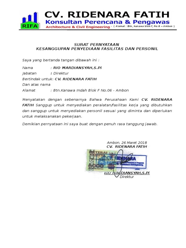 Untuk membuatnya pun sebenarnya tidak terlalu sulit karena tidak jauh berbeda dengan 2 contoh surat pernyataan kesanggupan kerja dan pembayaran hutang maupu juga contoh surat keterangan kerja untuk kpr npwp kuliah dan bank karena sama sama merupakan surat resmi dan di dalamnya berisi informasi mengenai sebuah pernyataan yang dibuat oleh seseorang. 1 4 surat pernyataan penyedia barang dan atau jasa dalam pelaksanaan pengadaan barang dan atau jasa secara elektronik e procurement pt pembangunan jaya ancol tbk. Disini anda dituntut untuk menulis dengan sebenarnya dan harus menepati pernyataan tersebut.