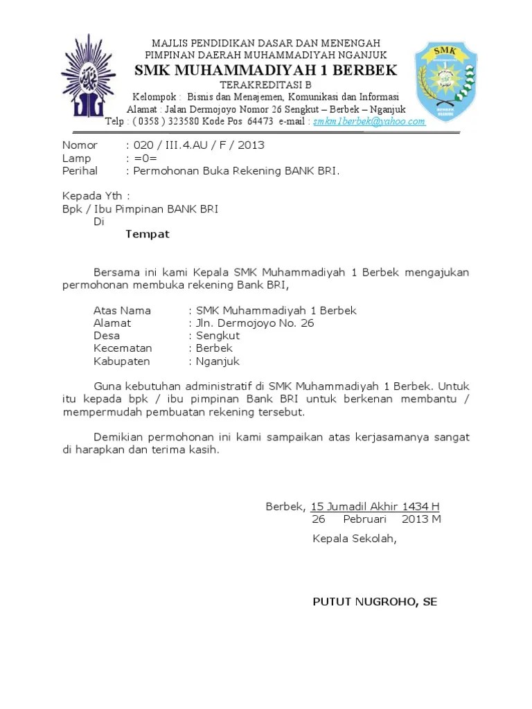 Yaaah sebagai anak rantau ane juga pernah diminta surat beginian ketika mu buat rekening di tanah rantau. Contoh surat pembukaan rekening bank bni.