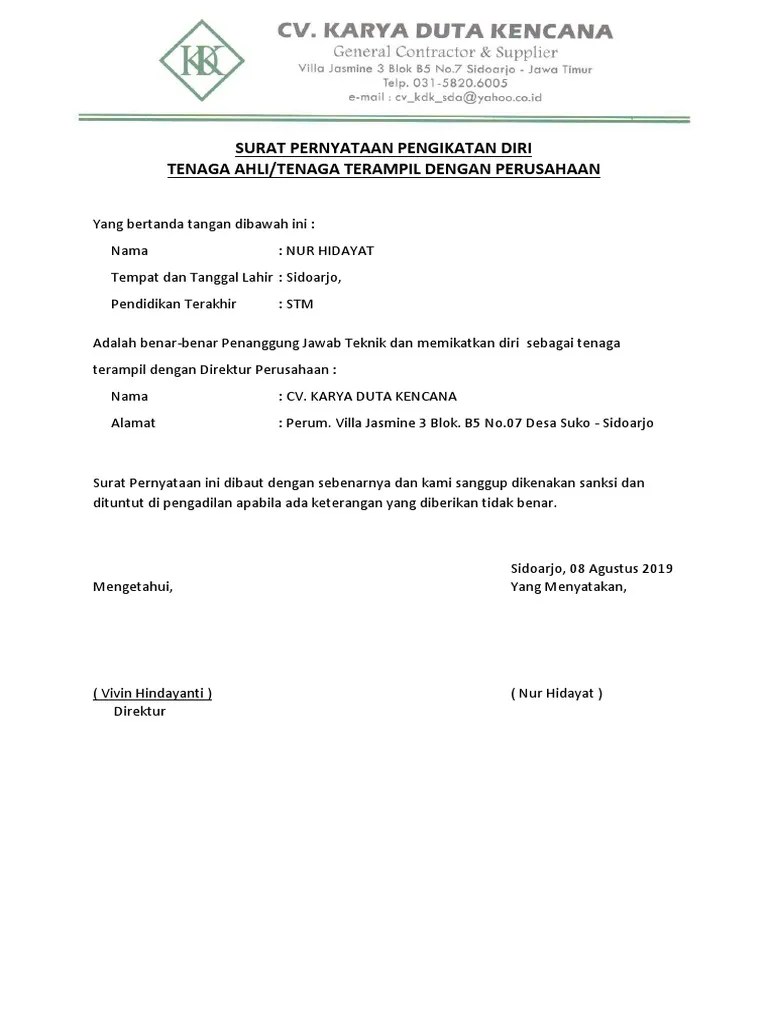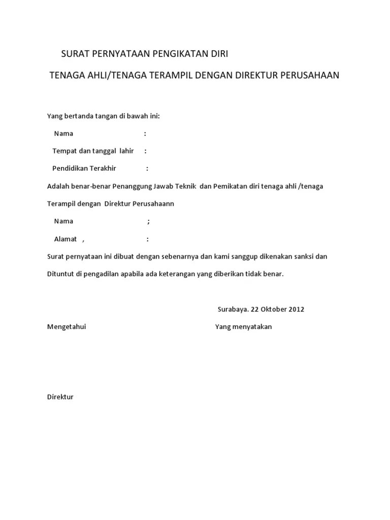 Contoh Surat Pernyataan Pengikatan Diri Tenaga Ahli - Surat ini biasanya dibuat oleh seorang anak atau anggota keluarga yang berhak menerima warisan dari orang yang telah meninggal dunia. Contoh surat pernyataan tenaga ahli untuk perusahaan format profesional sebagai referensi membuat surat pernyataan yang baik dan benar. Dalam bentuknya jika disebutkan secara lisan pernyataan sulit untuk dapat dibuktikan kecuali bila ada saksi. Academia edu is a platform for academics to share research papers.